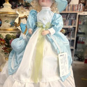 BAMBOLA OMBRELLO TESSUTO AZZURRO CAPELLI BIONDI