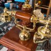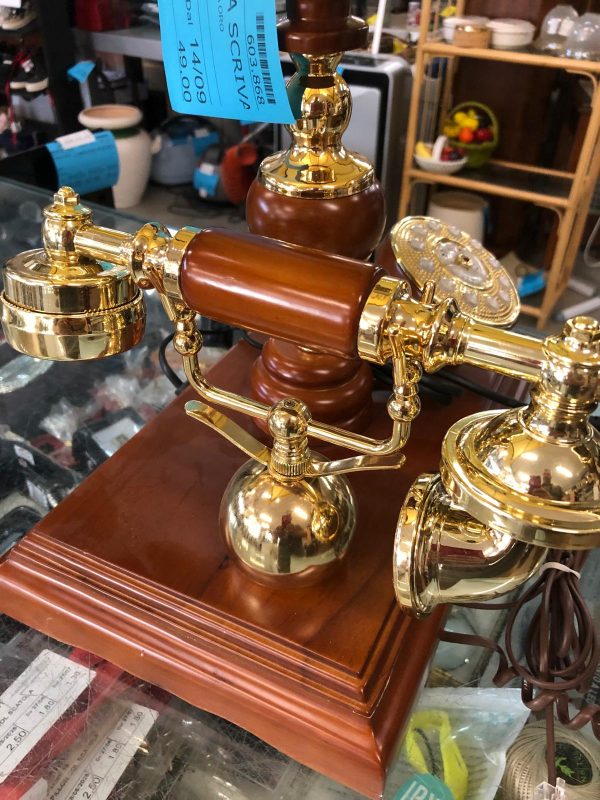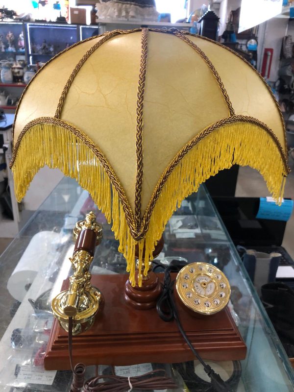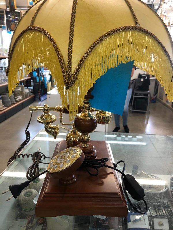 LAMPADA DA SCRIVANIA LEGNO CON TELEFONO CORNETTA ORO